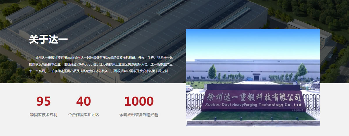 徐州達一鍛壓設備有限公司是集液壓機科研、開發、生產、貿易于一體的高新技術企業。目前能夠生產三十二個系列、一千余種液壓機產品以及成線成套裝備,同時可根據用戶要求開發設計非標專用產品,產品規格從40噸至30000噸,廣泛用于航空航天、汽車制造、新型能源、造船、軍工、輕工、家電等領域。