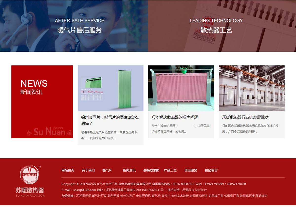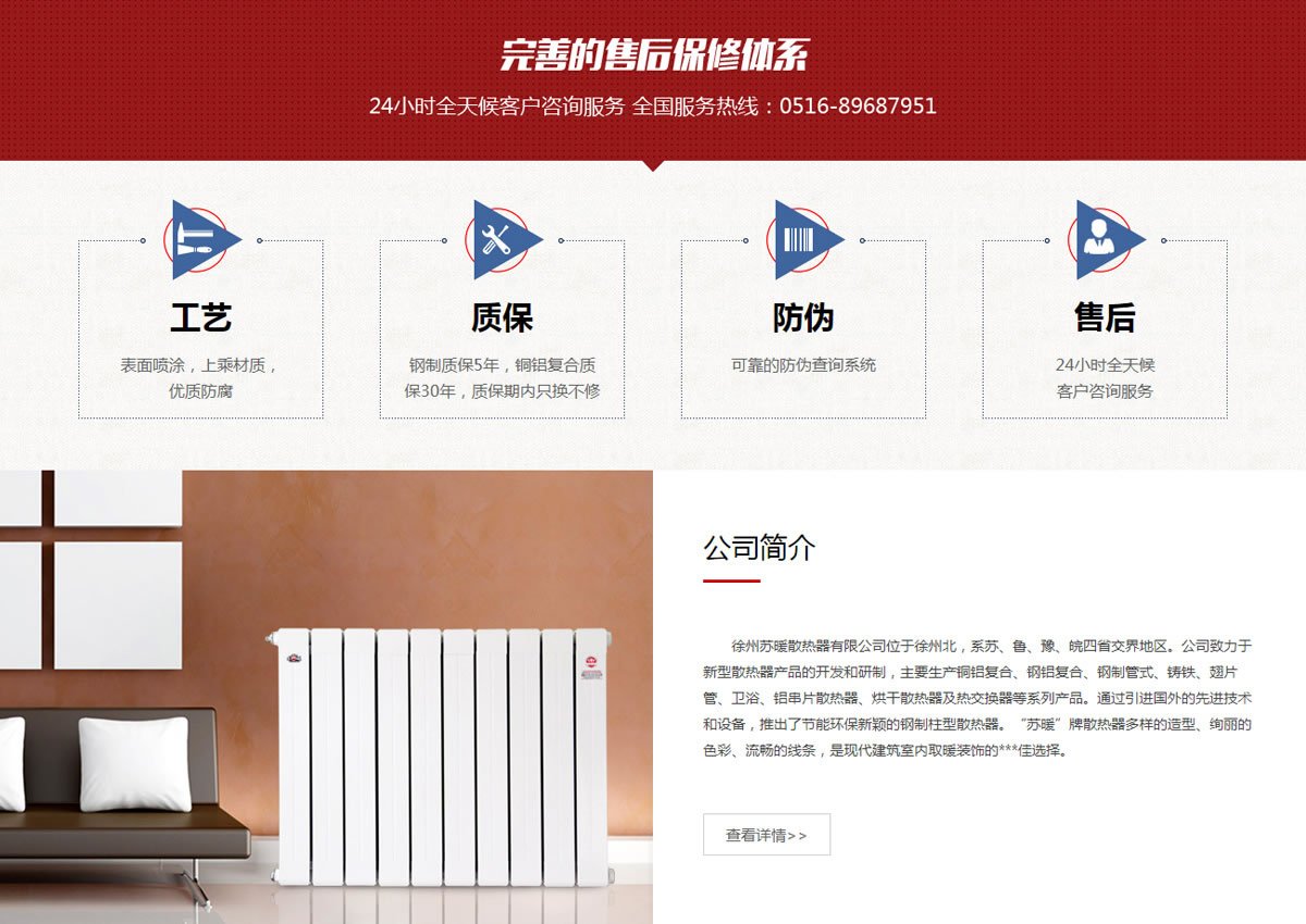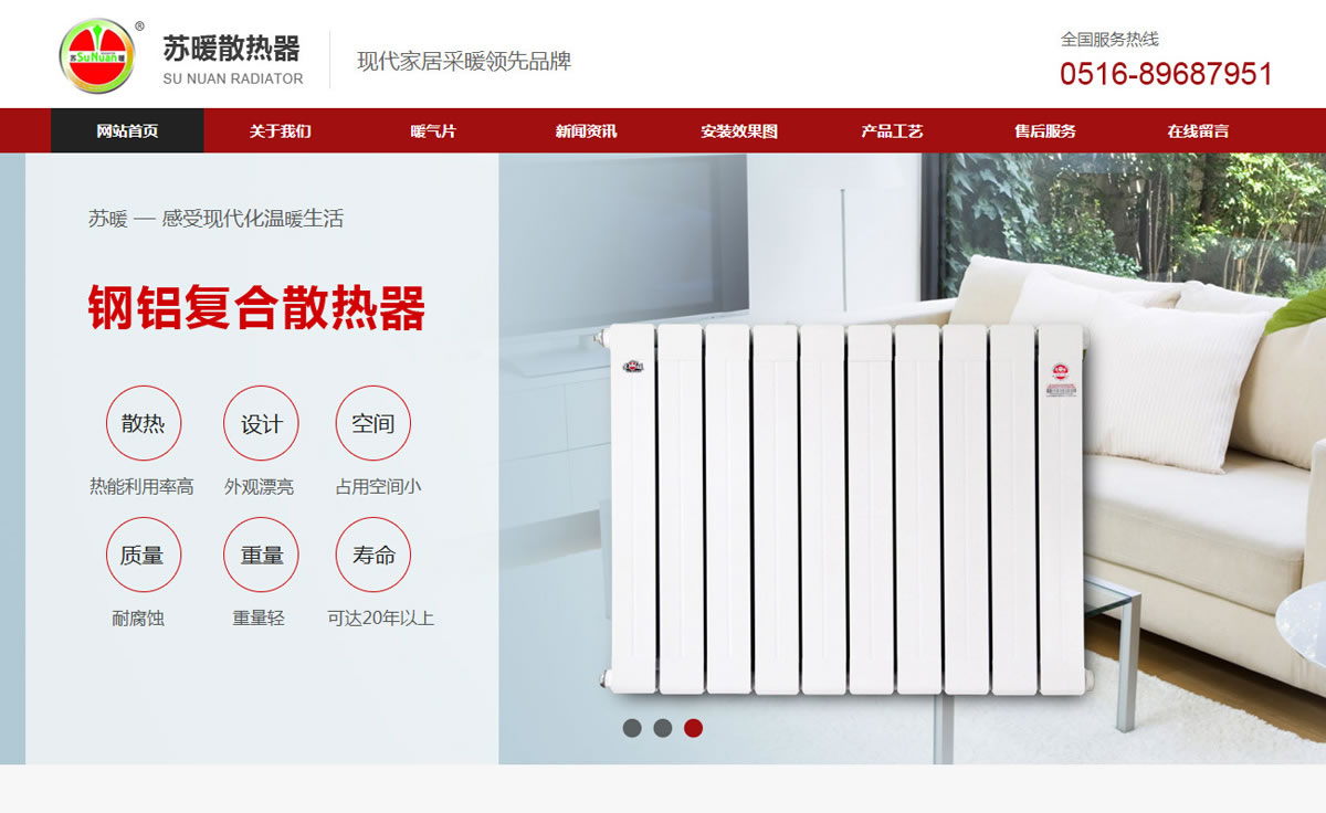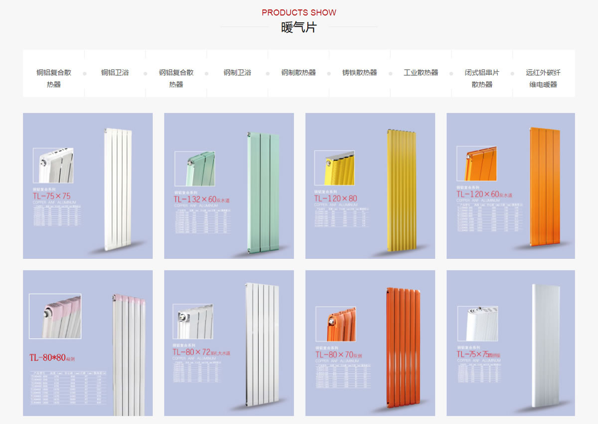 徐州蘇暖散熱器有限公司致力于新型散熱器產品的開發和研制,主要生產銅鋁復合、鋼鋁復合、鋼制管式、鑄鐵、翅片管、衛浴、鋁串片散熱器、烘干散熱器及熱交換器等系列產品。通過引進國外的先進技術和設備,推出了節能環保新穎的鋼制柱型散熱器。“蘇暖”牌散熱器多樣的造型、絢麗的色彩、流暢的線條,是現代建筑室內取暖裝飾不錯選擇。